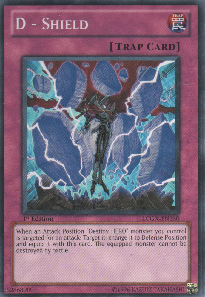 When an Attack Position "Destiny HERO" monster you control is targeted for an attack: Target it; change it to Defense Position and equip it with this card. The equipped monster cannot be destroyed by battle.