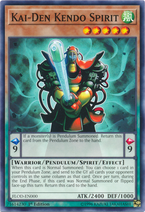When this card is Normal Summoned: you can choose one card in your Pendulum Zone, and send to the GY all cards your opponent controls in the same column as that card. Once per turn, during the End Phase, if this card was Normal Summoned or flipped face-up this turn: Return this card to the hand.
