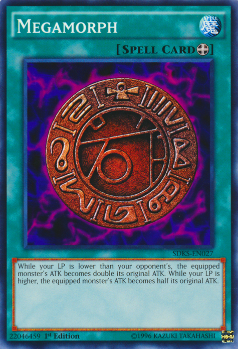 While your LP is lower than your opponent's, the equipped monster's ATK becomes double its original ATK. While your LP is higher, the equipped monster's ATK becomes half its original ATK.