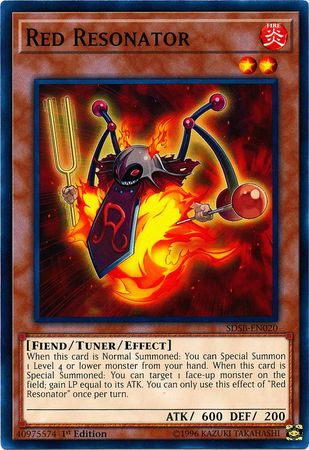 When this card is Normal Summoned: You can Special Summon 1 Level 4 or lower monster from your hand. When this card is Special Summoned: You can target 1 face-up monster on the field; gain LP equal to its ATK. You can only use this effect of "Red Resonator" once per turn.