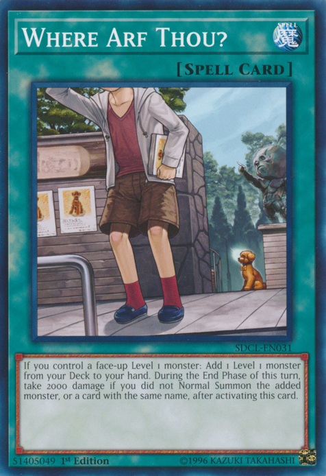 If you control a face-up Level 1 monster: Add 1 Level 1 monster from your Deck to your hand. During the End Phase of this turn, take 2000 damage if you did not Normal Summon the added monster, or a card with the same name, after activating this card.